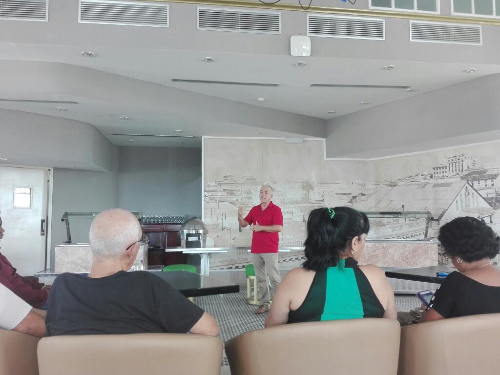La cita cienfueguera fue en el Hotel San Carlos, un lugar lleno de historia, que conocemos un poco más gracias al M.Sc. , presidente de la UNEAC y profundo conocedor la historia local, que relató las historias de la familia Mata, envuelta hoy en una reclamación de compensaciones por este mismo hotel, nacionalizado en la década de 1960.