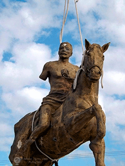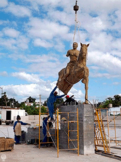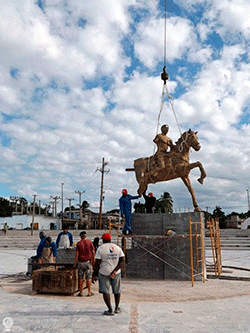 “Que pasa, que por razones de ética me sugirieron que le tapara los genitales, tanto a él como a su caballo, y que retirara unas escenas de combate que estaban en la cola del caballo. Pero la escultura está inspirada en la batalla de Manaquitas.”