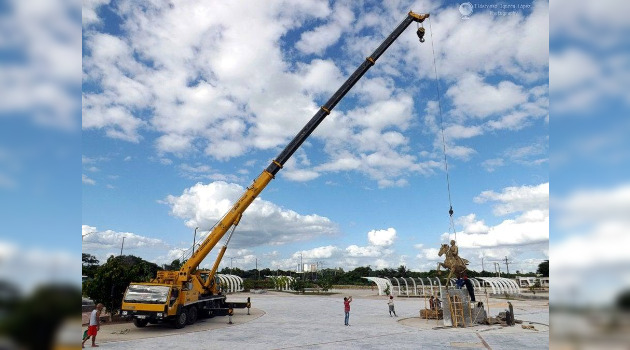 “Llegué a Santiago de Cuba a trabajar en el proyecto en febrero del año pasado y regresé a Cienfuegos en marzo de este año. En esa fecha comenzó el nuevo coronavirus a propagarse y ya no pude regresar. No fue hasta hace unos 30 días atrás que volví a Caguayo. Entera, la escultura no cabía en el camión. Entonces lo que hicimos fue traer una parte en una rastra y la otra por piezas en otro transporte para ir armándola toda aquí. Por eso tuvo que venir la brigada de la Fundación Caguayo, que está compuesta por especialistas de montaje”.