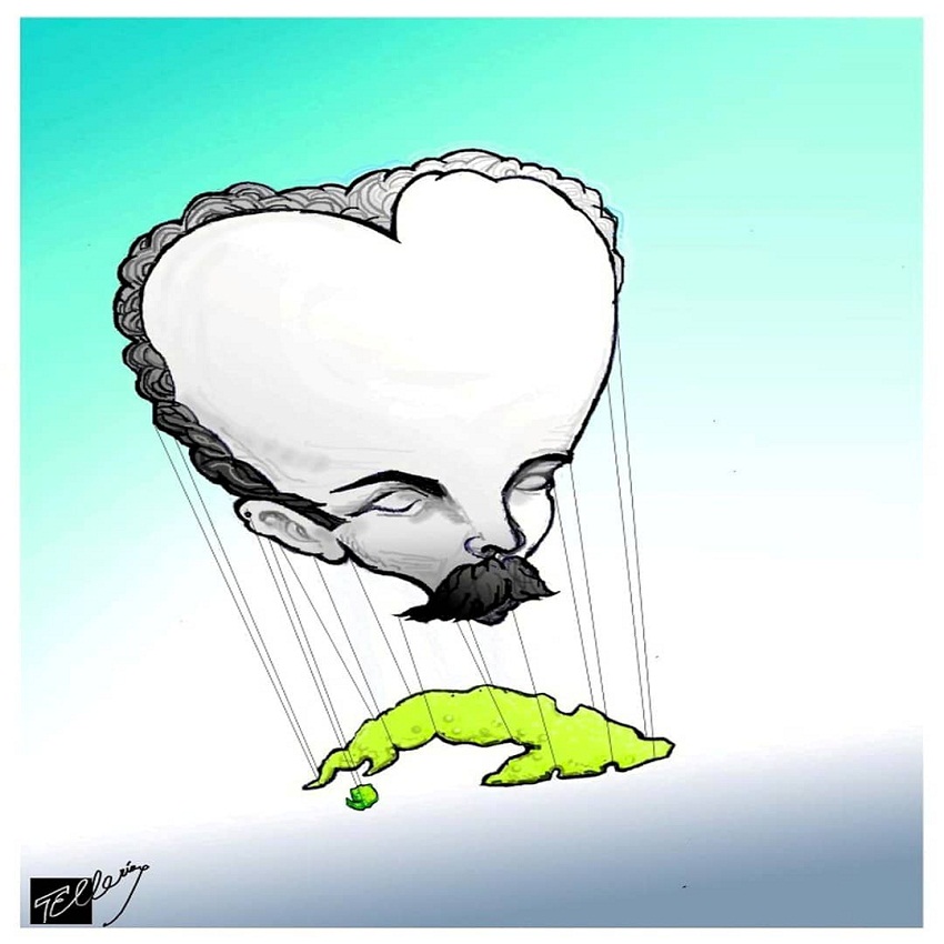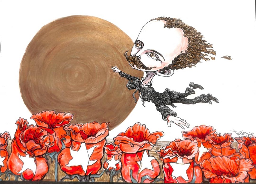 Es una brotación desde su imaginario y sus paradigmas. Lo muevo de su contexto al nuestro, de mis inquietudes de artista a su poética, como se representaba a sí mismo y cual dibujaba al Mundo; según la práctica artística que apreciaba.