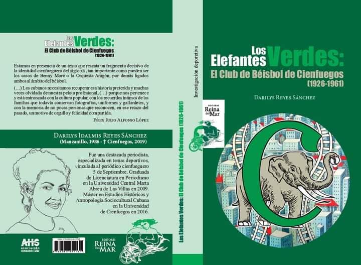 Por su parte Reina del Mar Editores presentó “Los elefantes verdes, el Club de Beisbol de Cienfuegos (1926-1961)”, de la periodista cienfueguera Darilys Reyes Sánchez, desaparecida físicamente en el año 2019, texto de su autoría, publicado este año, un homenaje a su memoria.