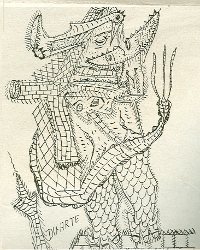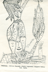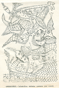 Los dibujos de Benjamín Duarte en ATEJE llevan al pie su título escrito en un lenguaje fantástico, inventado por su creador…