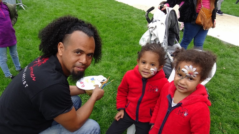 “El Festival de la Lilas allí es un evento que impacta, por lo multinacional, las naciones arman sus carpas, y pudo ondear nuestra bandera en el Parque Joliet Curiè. Realicé Body Art a muchos niños expresivos y agradecidos que concurre a la Fiesta con sus padres. Esta actividad tiene dos jornadas, y en la segunda hice una pintura en vivo, una obra que también quedó allá, como testimonio de nuestro trabajo”.